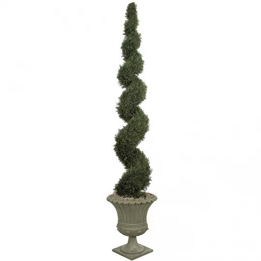 Artificial spiral topiary are an elegant touch for your decor. Our 10 foot artificial Cypress topiary looks amazing in an entrance to a home or office or as an accent in a restaurant. Our spiral topiaries can be are deliverd unpotted or potted in a non-decorative weighted planter.
