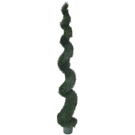 Let this beautifully shaped Spiral Pond Cypress Topiary help welcome guests into your driveway or door. This stately 10 foot Cypress boasts around 8140 leaves making it full and beautiful. Our outdoor artificial trees are made with a UV inhibitor designed to protect against harmful UV rays, and they are designed to withstand average wind and rain exposure.