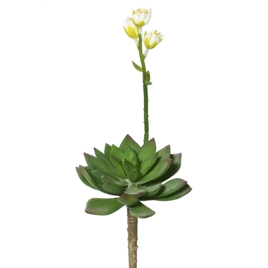 This special Echeveria comes with a dainty yellow and white blossom. This adds instant distinctive beauty on its own or added together with other succulents. Create your very own unique designs with this artificial succulent.