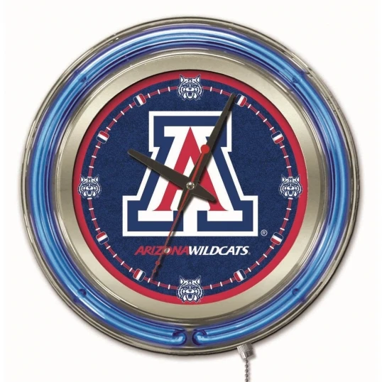 Our neon-accented Logo Clocks are the perfect way to show your school pride. Chrome casing and a team specific neon ring accent a custom printed clock face, lit up by an brilliant white, inner neon ring. Neon ring is easily turned on and off with a pull chain on the bottom of the clock, saving you the hassle of plugging it in and unplugging it. Accurate quartz movement is powered by a single, AA battery (not included). Whether purchasing as a gift for a recent grad, sports super fan, or for yourself, you can take satisfaction knowing you’re buying a clock that is proudly made by the Holland Bar Stool Company, Holland, MI.