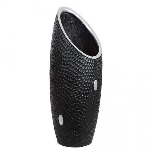 16IN Black/Silver Fiberglass Contempo Vase: 6.5×4.5IN Inside Dia.