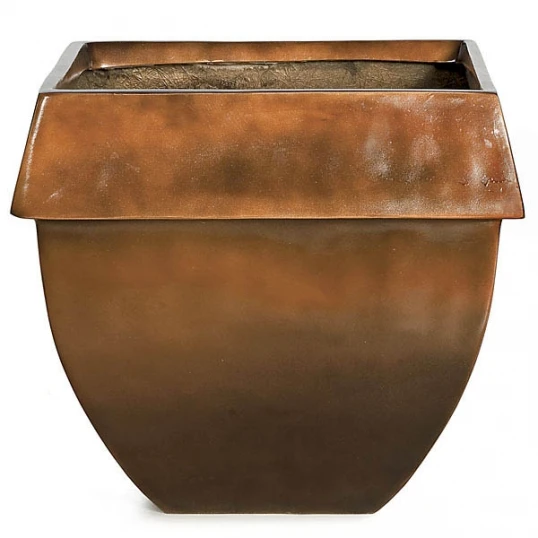 18 inch Glossy Copper Fiberglass Square Planter: 16.25IN Inside Dia.