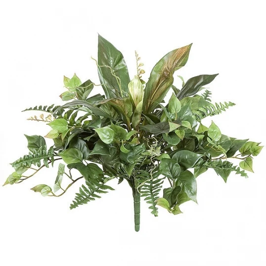 Get the look of a custom arrangement without the cost. This artificial bush features a combination of philodendron, fishtail fern, and cordyline leaves. Just plant it in the container of your choice and add it to any room in your home.