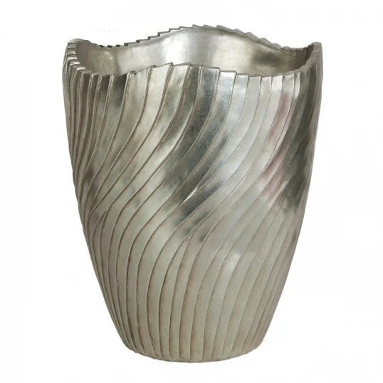 19H x 16W inch Brushed Silver Fiberglass Planter: 14.25IN Inside Dia.