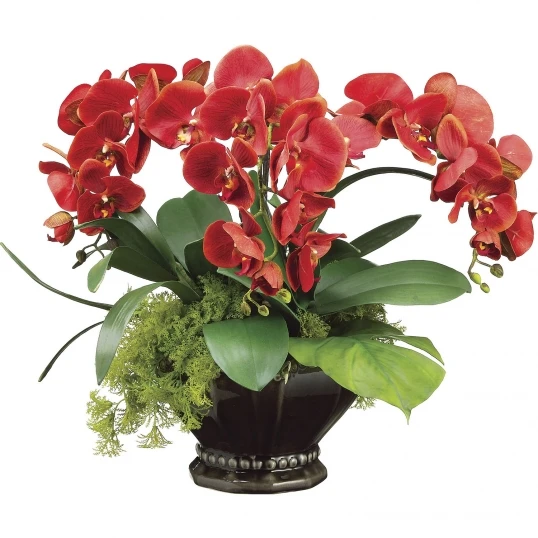 20in Phalaenopsis, Moss, & Orchid Leaf Arrangement in Scallop Bowl