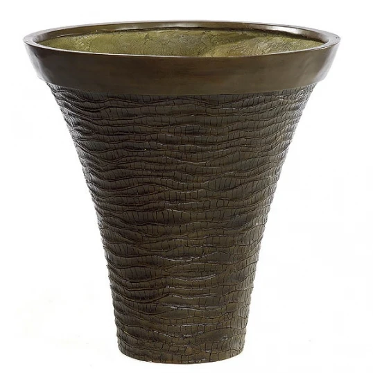 22.5 inch Brown Fiberglass Carved Motif Planter: 20.75IN Inside Dia.
