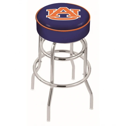 Made for the ultimate sports fan, impress your buddies with this knockout from Holland Bar Stool. This contemporary 25 inch Auburn Chrome 2-Ring Base Swivel Bar Stool has a 4 inch cushion with a tough double-ring base and a chrome finish. Holland Bar Stool uses a detailed screen print process that applies specially formulated epoxy-vinyl ink in numerous stages to produce a sharp, crisp, clear image of your desired logo. You can not find a higher quality logo stool on the market. The structure is triple chrome-plated to ensure a rich, polished finish that will last ages. If you are going to finish your bar or game room, do it right with a Holland Bar Stool.
