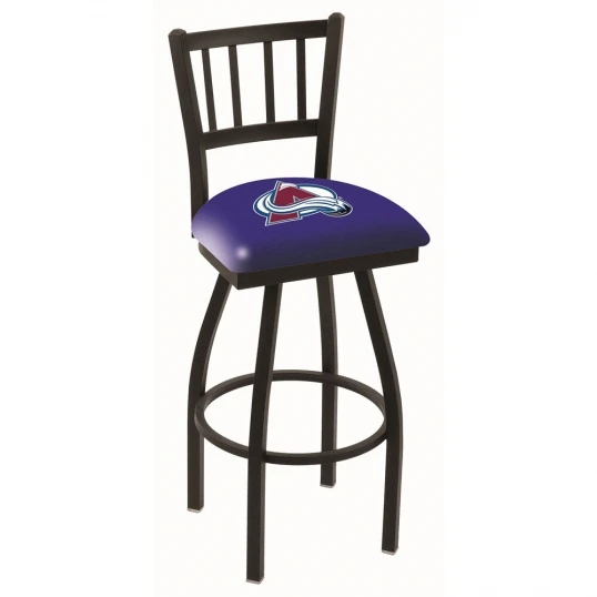 Made for the ultimate sports fan, impress your buddies with this knockout from Holland Bar Stool. This contemporary 25 inch Black Colorado Avalanche Swivel Bar Stool has a jailhouse styled back that doesnt just add comfort, but sophistication. Holland Bar Stool uses a detailed screen print process that applies specially formulated epoxy-vinyl ink in numerous stages to produce a sharp, crisp, clear image of your desired logo. You can not find a higher quality logo stool on the market. The plating grade steel used to build the frame is commercial quality, so it will withstand the abuse of the rowdiest of friends for years to come. The structure is powder-coated black wrinkle to ensure a rich, sleek, long lasting finish. Construction of this framework is built tough, utilizing solid welds. If you are going to finish your bar or game room, do it right with a Holland Bar Stool.