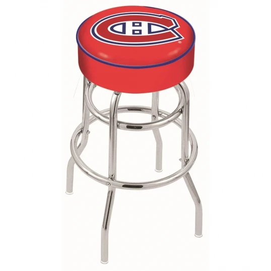 Made for the ultimate sports fan, impress your buddies with this knockout from Holland Bar Stool. This contemporary 25 inch Montreal Canadiens Chrome 2-Ring Base Swivel Bar Stool has a 4 inch cushion with a tough double-ring base and a chrome finish. Holland Bar Stool uses a detailed screen print process that applies specially formulated epoxy-vinyl ink in numerous stages to produce a sharp, crisp, clear image of your desired logo. You can not find a higher quality logo stool on the market. The structure is triple chrome-plated to ensure a rich, polished finish that will last ages. If you are going to finish your bar or game room, do it right with a Holland Bar Stool.