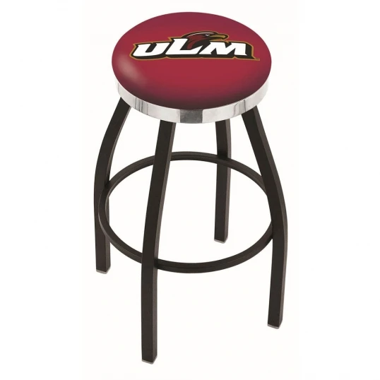 Made for the ultimate sports fan, impress your buddies with this knockout from Holland Bar Stool. This contemporary 30 inch Black Louisiana-Monroe Swivel Counter Stool with Chrome Accent Ring has a single-ring black wrinkle base with a 2.5 inch cushion and a chrome accent ring that helps the seat to pop-out at first glance. Holland Bar Stool uses a detailed screen print process that applies specially formulated epoxy-vinyl ink in numerous stages to produce a sharp, crisp, clear image of your desired logo. You can not find a higher quality logo stool on the market. The plating grade steel used to build the frame is commercial quality, so it will withstand the abuse of the rowdiest of friends for years to come. The structure is powder-coated to ensure a rich, sleek, long lasting finish. Construction of this framework is built tough, utilizing solid mig welds. If you are going to finish your bar or game room, do it right with a Holland Bar Stool.