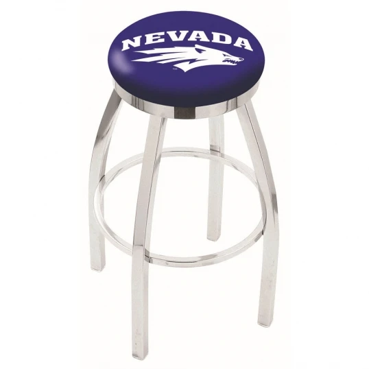 Made for the ultimate sports fan, impress your buddies with this knockout from Holland Bar Stool. This contemporary 30 inch Chrome Nevada Swivel Counter Stool with Accent Ring has a single-ring chrome base with a 2.5 inch cushion and a chrome accent ring that helps the seat to pop-out at first glance. Holland Bar Stool uses a detailed screen print process that applies specially formulated epoxy-vinyl ink in numerous stages to produce a sharp, crisp, clear image of your desired logo. You can not find a higher quality logo stool on the market. The plating grade steel used to build the frame is commercial quality, so it will withstand the abuse of the rowdiest of friends for years to come. The structure is triple chrome plated to ensure a rich, sleek, long lasting finish. Construction of this framework is built tough, utilizing solid mig welds. If you are going to finish your bar or game room, do it right with a Holland Bar Stool.