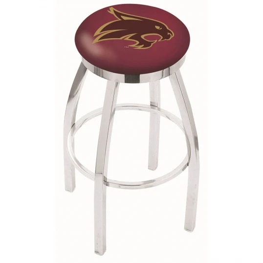 Made for the ultimate sports fan, impress your buddies with this knockout from Holland Bar Stool. This contemporary 30 inch Chrome Texas State Swivel Counter Stool with Accent Ring has a single-ring chrome base with a 2.5 inch cushion and a chrome accent ring that helps the seat to pop-out at first glance. Holland Bar Stool uses a detailed screen print process that applies specially formulated epoxy-vinyl ink in numerous stages to produce a sharp, crisp, clear image of your desired logo. You can not find a higher quality logo stool on the market. The plating grade steel used to build the frame is commercial quality, so it will withstand the abuse of the rowdiest of friends for years to come. The structure is triple chrome plated to ensure a rich, sleek, long lasting finish. Construction of this framework is built tough, utilizing solid mig welds. If you are going to finish your bar or game room, do it right with a Holland Bar Stool.