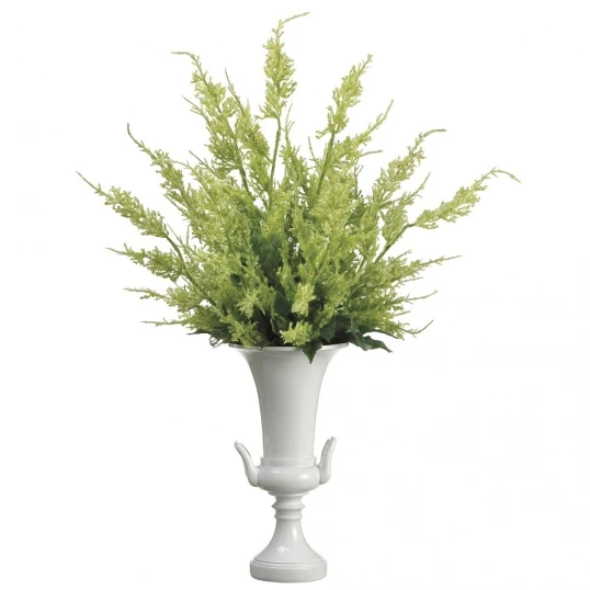 Create a contemporary and captivating moment in your foyer or formal dining room with this 36 inch tall Astilbe Arrangement. A slender but tall white resin urn sets the foundation for this arrangement. Inside the urn are an abundance of lime green artificial stems of varying heights. This would make an incredible centerpiece at a spring or summer wedding, reception, or dinner party.
