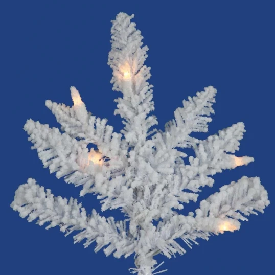 This perfectly sized 4.5 foot Flocked White Spruce Tree comes pre-lit with 250 multi-colored lights. You can’t help but smile when you see the colorful lights bounce off the white foliage.