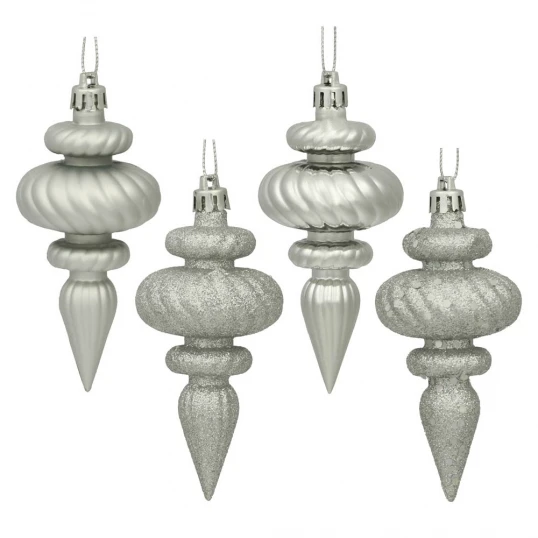 4 inch Silver Assorted Finial Ornaments: (Set of 8)
