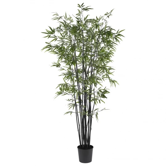 Need something classic and to fit in any environment? This is why an artificial black bamboo palm would be perfect for your home. A very chic and sweet look will come from this black bamboo tree. Having a plastic palm tree in your home will feel like you are right there in a tropical area. The 6.5-foot artificial black bamboo palm tree will give your place a welcoming feeling. The gorgeous lush leaves will makeover any spot in your location. You will feel relaxed knowing the plant is there in your home giving off the appearance of a softened landscape. The palm requires no extra care. There is no need for water, sun, or a warm climate. The quality of the plant will make people think it is a real plant. A home or office will have conditions that would typically harm an actual palm plant. That is why the artificial bamboo palm plant is the best substitute to create the atmosphere for being near a tropical place. The silk black bamboo plant is inside of a fundamental potted black pot, creating a wholesome balance. You need to go on and welcome this plant into your home. Something is looking to claim a corner in your home. The 6.5-foot artificial black bamboo palm should be the center decor of your home. The palm tree has over seventeen-hundred green-like leaves on a tall cluster of natural looking bamboo trunks. Buy this chic black bamboo palm tree.