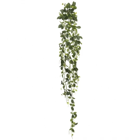 Bring in this airy 65 inch Fittonia Hanging Vine for a fresh green pop. This vine will spruce up your covered porch, and dark kitchen corner, or your office. The natural beauty of this artificial vine gives it versatility and longevity.