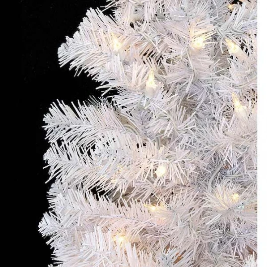 You can have a fun, wonderful, white Christmas when you buy this 7.5 foot White Sugar Pencil Pine Christmas Tree. It comes pre-lit with clear lights so it will shine and dazzle in your home. This tree will help you create a uniquely elegant holiday home.