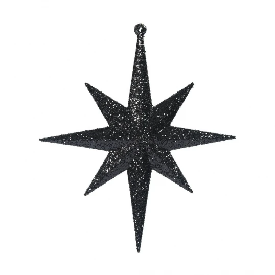 8 inch Black Iridescent Glitter Bethlehem Star Ornament: Set of 4