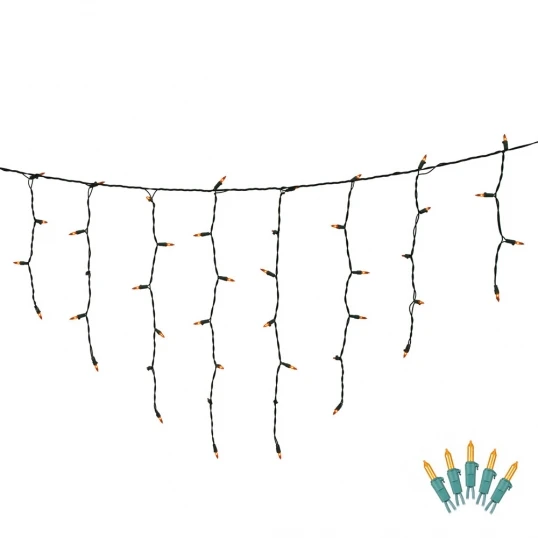 9 foot 100 Amber Christmas Icicle Set: Mini Lights