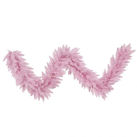 9 foot x 14 inch Light Pink Fir Garland: Unlit. Use this Light Pink Garland to help you decorate for Christmas, Easter, or any party. You will find many decorating opportunities for this whimsical garland.