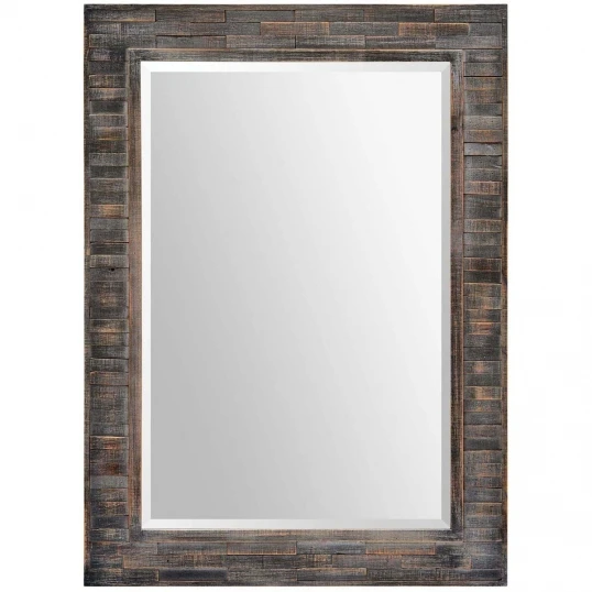 The Liuhana mirror is formed with panels of wood completed with a rich, dark finish.