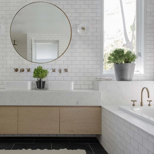 A thin gold leafed metal strip perfectly frames this Spartan statement mirror.