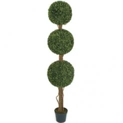 60 Inch Artificial Outdoor Boxwood Triple Ball Topiary: Potted